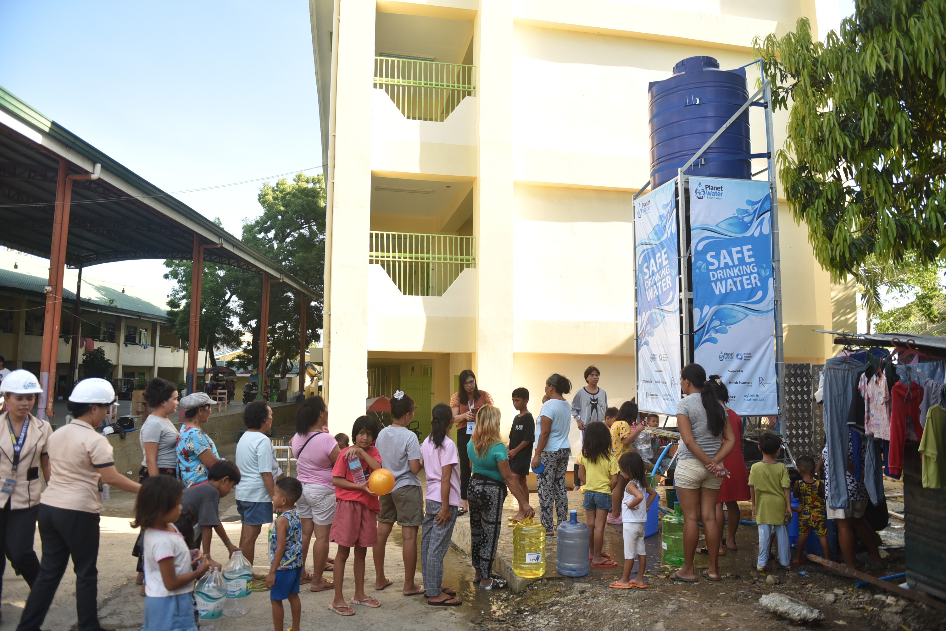 The first AquaTower water filtration system was installed at Mohon Elementary School in Talisay City, where 214 families sheltering across 38 classrooms have been without reliable access to safe water since the storm. With this system in place, the community now has access to clean, safe drinking water as recovery efforts continue.